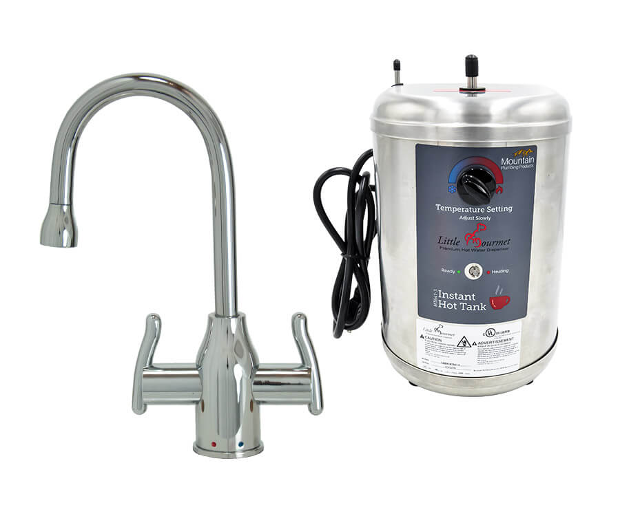 Hot & Cold Water Faucet with Modern Curved Body & Handles & Little Gourmet® Premium Hot Water Tank